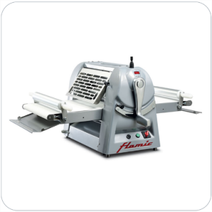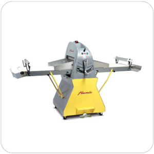 Masina foietat de masa Flamic ce poate rula orice tip de aluat, chiar si unul de grosime foarte mica, tehnologie si origine Italia, realizata din otel inox si otel vopsit electrostatic. Dimensiuni utilaj 168*87*90 cm si dimensiuni banda 45*70 cm, potrivita pentru un laborator de dimensiuni mici – medii.