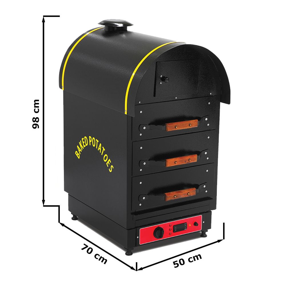 Cuptorul profesional electric este un echipament esential pentru restaurante, cafenele si unitati de catering specializate in preparate din cartofi copti. Acest cuptor este proiectat pentru a oferi performanta excelenta, dimensiune de 50*70*98 cm, capacitate de 36-45 cartofi/ ora, eficienta si consistenta in coacerea cartofilor, asigurand rezultate delicioase de fiecare data.