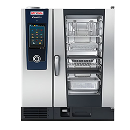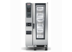 Cuptor profesional RATIONAL iCombi Pro gastro/patiserie, electric cu umidificare automata si boiler, 20 tavi GN1/1 + caruciorICombi Pro 20-1/1-ELEPutere instalata: 37,2 kWCapacitate: 20 tavi GN 1/1 sau 40 GN1/2Dimensiuni (cm): 87*91*187