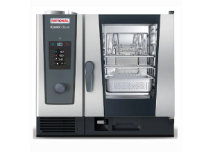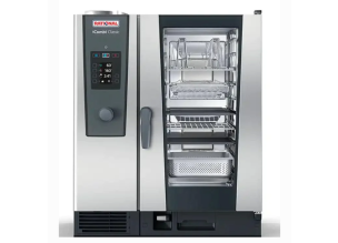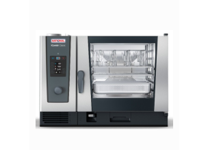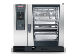 Cuptor profesional RATIONAL iCombi Classic gastro/patiserie, pe gaz cu umidificare automata si boiler, 10 tavi GN2/1ICombi Classic 10-2/1-GASPutere instalata: 40 kWCapacitate: 10 tavi GN 2/1 sau 20 GN1/1Dimensiuni (cm): 107*104*106