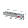 Capacitatea sa de 7*GN 1/4 asigura un acces rapid la toate ingredientele esentiale, oferind eficienta maxima in procesul de preparare. Cu un interval de temperatura reglat intre 2 si 8 grade Celsius, vitrina asigura prospetimea adecvata a ingredientelor de pizza, contribuind la creatia unor pizze de calitate. Cu un sistem de racire static, unitatea mentine o temperatura stabila in intregul spatiu, esential pentru pastrarea prospetimii si calitatii ingredientelor. Vitrina pentru ingrediente are o dimensiune de 160*35*50 cm și o capacitate generoasă de 7*GN 1/4.