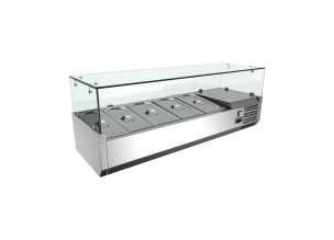 Vitrina ingrediente, inox, 5 cuve GN1/4, 120*33*43 cm-23%TPK000Putere: 145 WDimensiuni (cm): 120*33*23/43,5 (fara geam/cu geam)Capacitate: 5*GN1/4Structura: otel-inoxTensiune alimentare: 220V/50HzTemperatura de lucru: +2/+8 CTemperatura ambientala: +35 CAgent racire: R134 / R600Racire: staticaPanou de control electronicSticla temperataCuvele nu sunt incluseGreutate: 39 kgProdus promotionalPret normal 480,00 € Special Price 369,00 € + TVA -