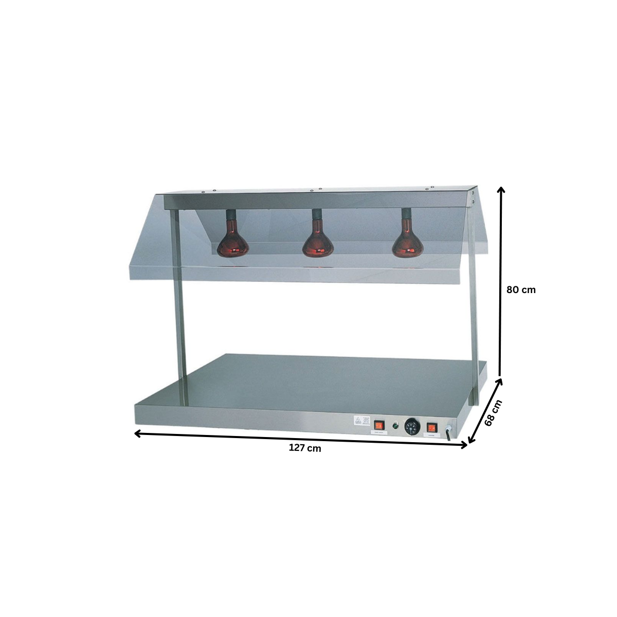 Blatul cald cu 3 lampa infrarosu este un echipament esential pentru unitatile de alimentatie publica care doresc sa mentina preparatele calde si apetisante pana in momentul servirii. Acesta combina o suprafata de incalzire eficienta cu o lampa infrarosu, oferind un control excelent al temperaturii si o prezentare atractiva a mancarurilor.