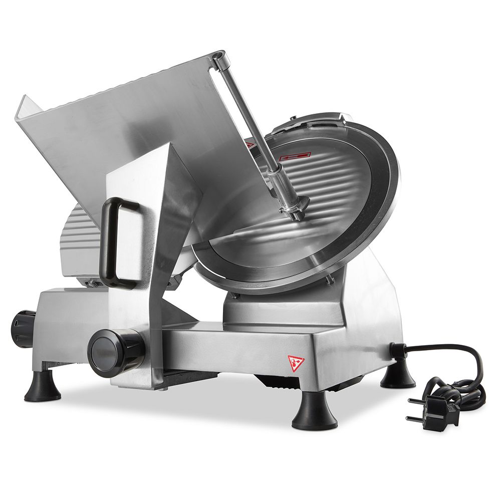 Cu aceasta masina profesionala de feliat mezeluri, avand un diametru de 30 cm, puteti taia felii perfecte de mezeluri si alte preparate din carne. Acest feliator nu doar ca este sigur si usor de manevrat, dar si extrem de silentios. Este ideal pentru utilizarea in bucataria restaurantului dvs. sau in carmangerii, magazine sau supermarketurile ce au vitrina de mezeluri.