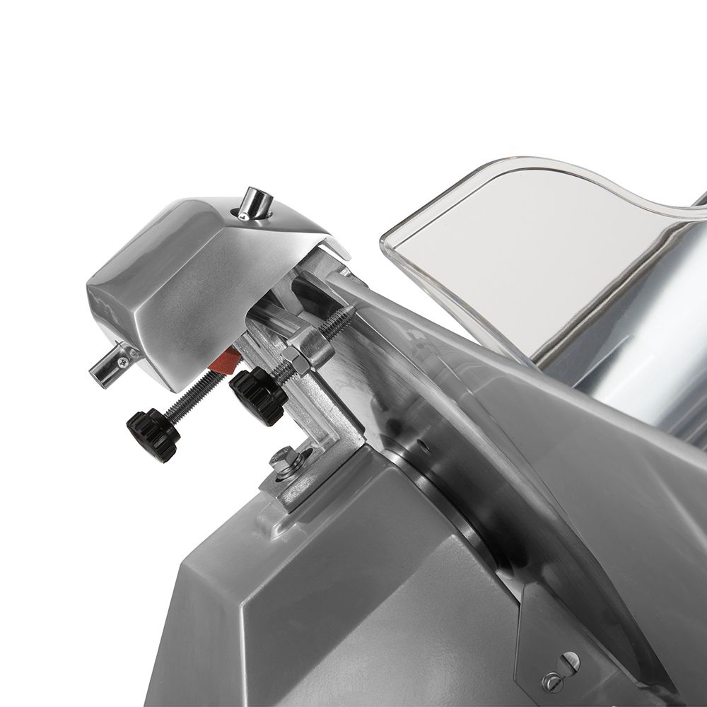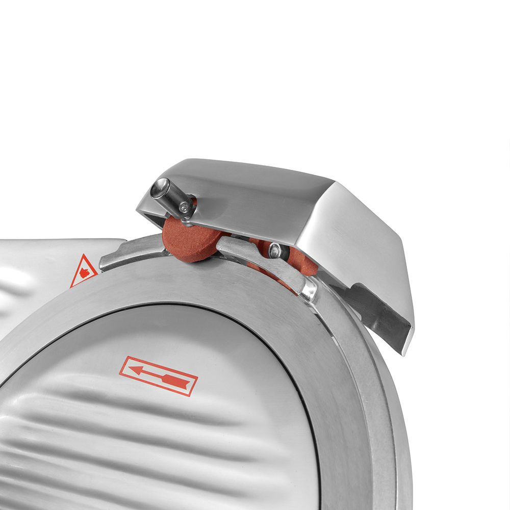 Felierea este realizata in conditii de siguranta cu aceasta masina robusta. Datorita designului sau, mainile operatorului sunt mentinute la distanta de lama. Masina de taiat dispune de un accesoriu pentru ascutirea lamei. Asigurarea unei ascutiri regulate imbunatateste siguranta in timpul taierii. Rotind accesoriul, lama este trecuta prin pietrele de ascutit. Dupa ascutire, este esential sa curatati bine masina de feliat pentru a preveni transferul de particule fine la alimente.