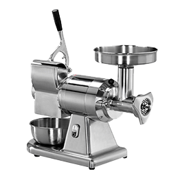 Masina de tocat carne si razuit din aluminiu 160 kg/hMNTS400Nr. 12Putere: 0,75 kW - 1 hpDimensiuni (cm): 59*29*51Structura: otel inox AISI 304Capacitate masina de tocat: 160 kg/hCapacitate razuire cascaval: 40 kg/hDimensiuni deschidere razuire (cm): 14*7,5Tensiune alimentare: 220V / 50HzOptional tensiune alimentare: 380V/50HzGreutate echipament: 23 kg -
