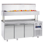 Masa rece preparare pizza dispune de termostat si termometru digital ce poate fii utilizat cu usurinta, structura, interior si exterior, din otel-inox ce aduce o nota de eleganta si igiena, picioare reglabile pe inaltime, prevazut cu 3 polite, izolatie ecologica din poliuretan injectat cu densitatea de 35/40 kg/mc si grosime 5 cm, sistem evaporare apa automat cu gaz cald, temperatura ambientala: +43 grade Celsius / 65% umiditate. Temperatura de lucru al echipamentului este reglabila pentru a fii eficient fiecarui ingredient.