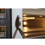 Cu o suprafata generoasa de coacere de 10.8 metri patrati, acest cuptor este potrivit pentru fiecare patiserie si brutarie cu dimensiuni de 246*298*215 cm. Tuburile anulare si sistemul ciclotermic asigura o distributie uniforma a caldurii, garantand astfel coacerea uniforma a produselor pe toata suprafata cuptorului.