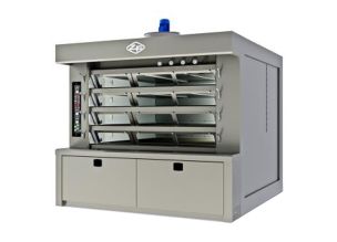 Cu o suprafata generoasa de coacere de 12 metri patrati, acest cuptor este potrivit pentru fiecare patiserie si brutarie cu dimensiuni de 185*348*215 cm. Tuburile anulare si sistemul ciclotermic asigura o distributie uniforma a caldurii, garantand astfel coacerea uniforma a produselor pe toata suprafata cuptorului.