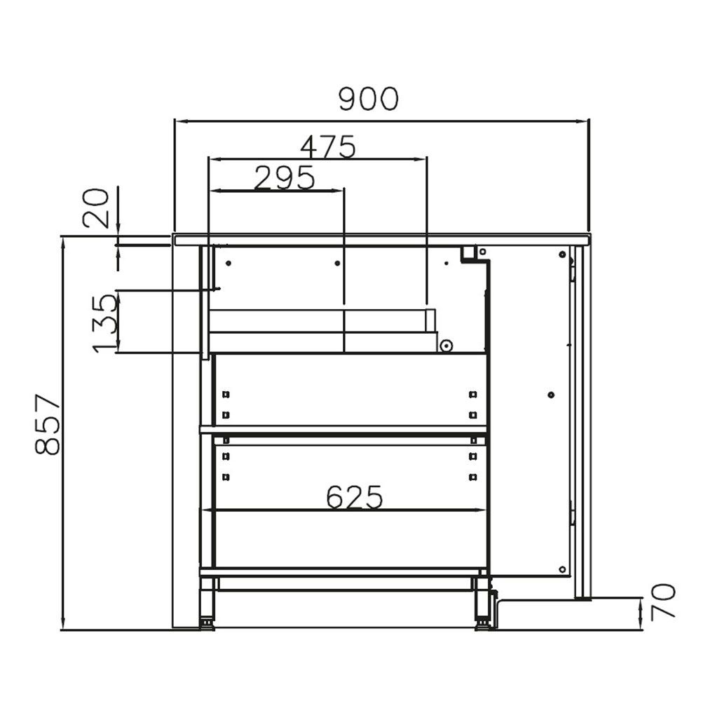 Plinta frontala, plintele laterale si blatul de lucru sunt din inox.